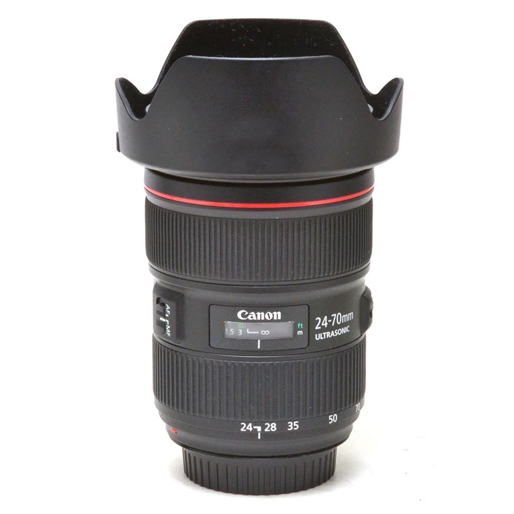 EF 24-70mm f/2.8L II USM é uma lente zoom da série L da Canon comumente considerada a máquina de trabalho mais robusta das lentes. Variando de grande angular a retrato, esta lente também se distingue por sua abertura máxima constante de f/2.8 para beneficiar o trabalho em condições difíceis de iluminação e proporcionar maior controle sobre a profundidade de campo. A lente também é caracterizada por seu sofisticado design óptico, que inclui um elemento Super UD e dois elementos UD, que reduzem a franja de cores e as aberrações cromáticas para alcançar um alto grau de precisão e clareza de cores. Três elementos asféricos também são apresentados e minimizam a distorção e as aberrações esféricas para melhor nitidez. Além disso, um revestimento Super Spectra foi aplicado a elementos individuais para controlar reflexos e fantasmas para alto contraste e fidelidade de cores neutras.